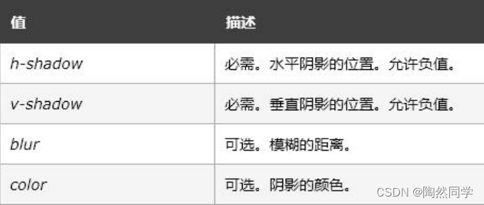 格式: text-shadow : X 轴偏移 Y 轴偏移 模糊程度 阴影颜色 ;