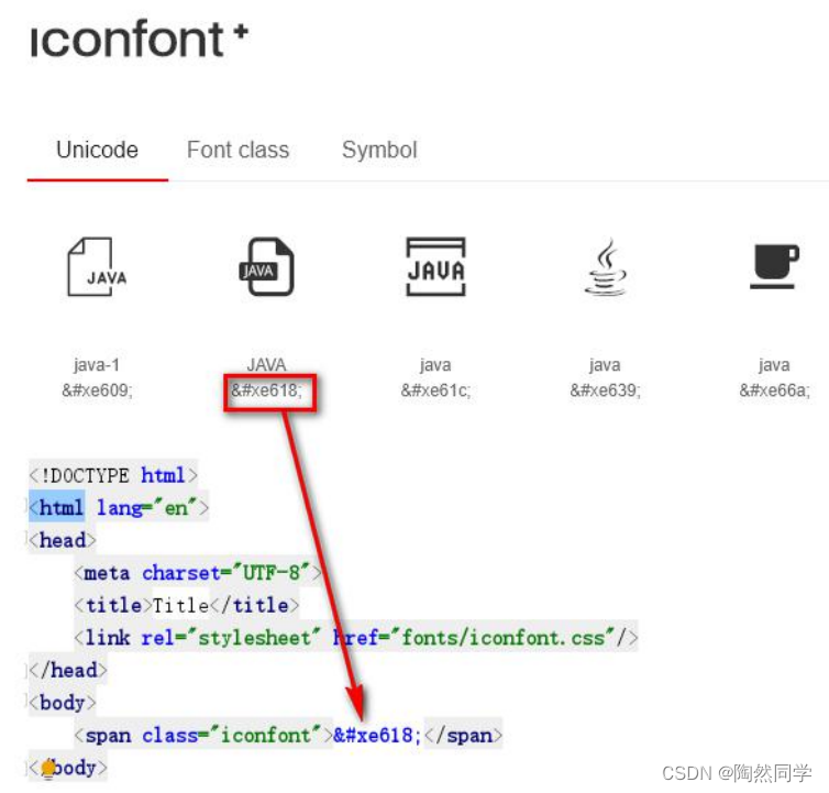 5、查询图标对应的 Unicode 码,修改 span 中的转义字符值。