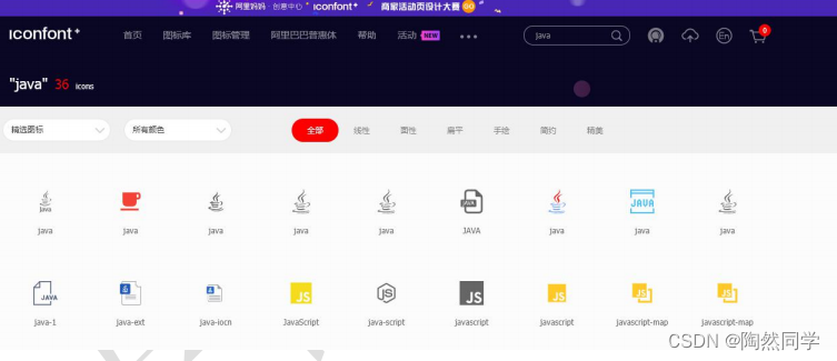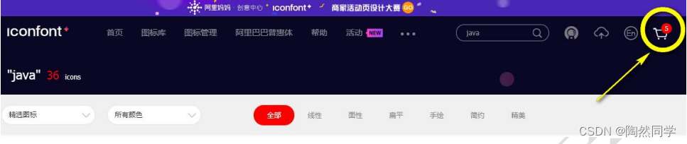 、登陆 阿里字体图标库,搜索你需要的字体: