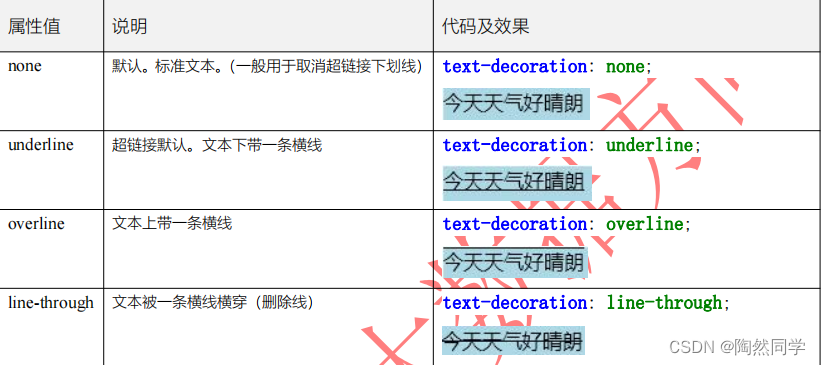 文本的装饰效果。(通常用于给超链接修改装饰效果)