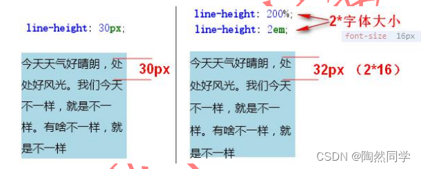 line-height:用于设置元素内,每行之间的间距。(行高越大,行间距越大)