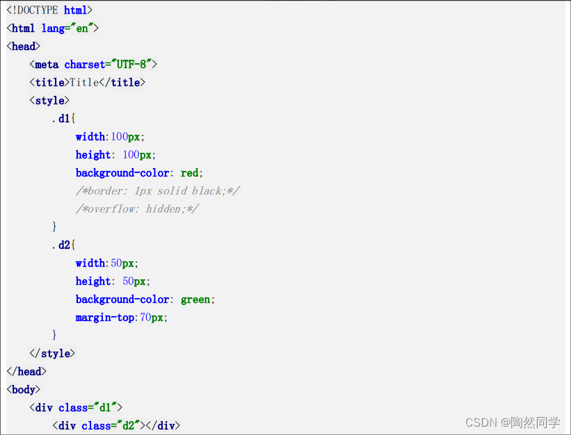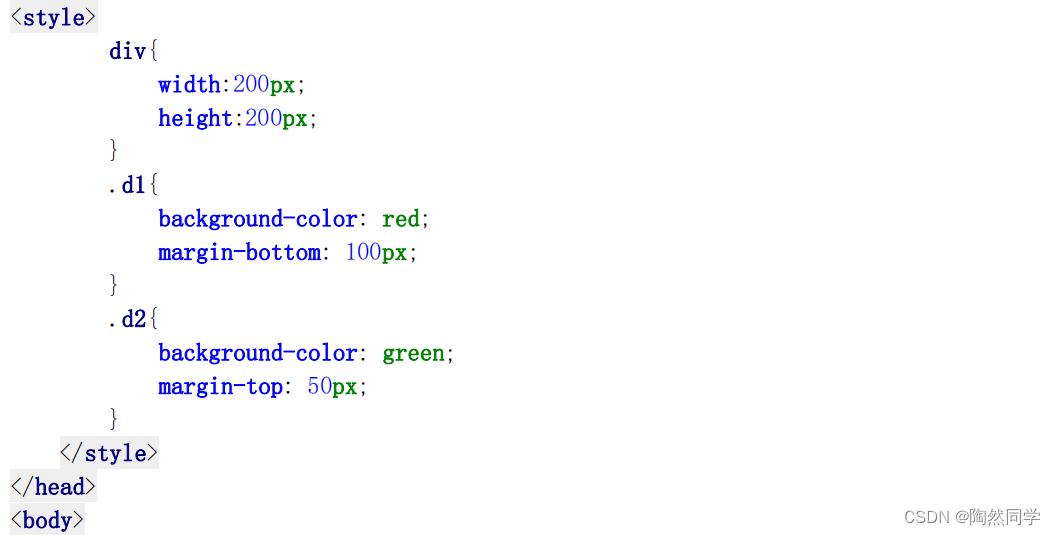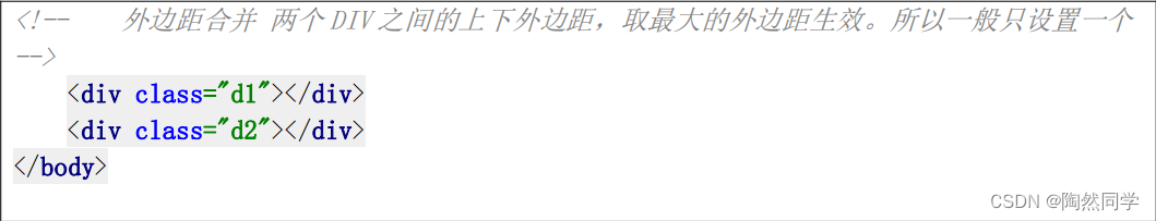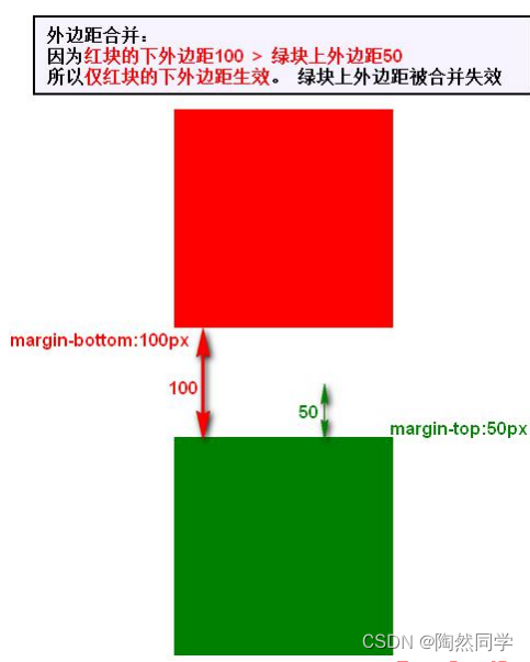 外边距合并:两个相邻元素的接壤外边距仅最大的生效,较小的被合并。(被合并的外边距代码已