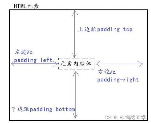 内边距:HTML 元素里的内容体 到 HTML 元素边框 的距离