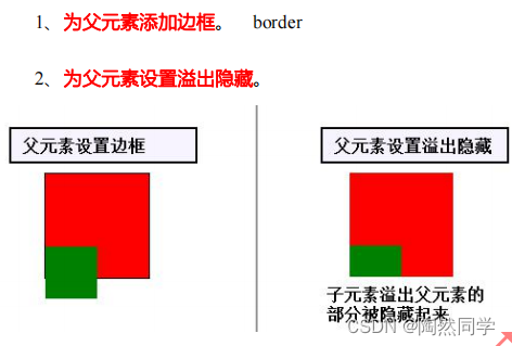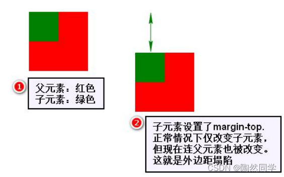 外边距塌陷:特指父子元素,因父元素无边框,父元素的外边距会塌陷到子元素中。导致子元素设