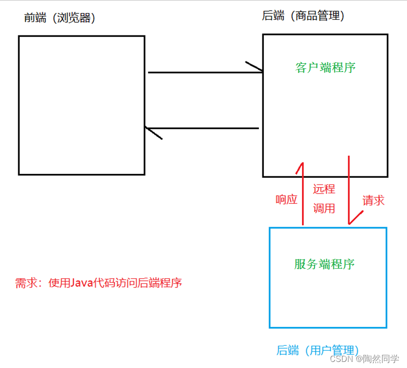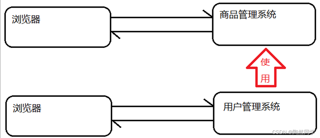 “商品管理系统”调用“用户管理系统”的过程,就是“远程调用”。此时“商品管理系统”相当于模拟“浏览器”。