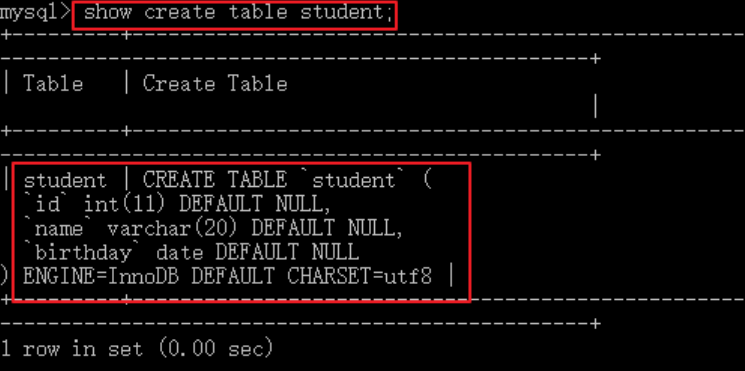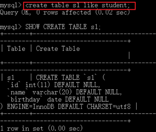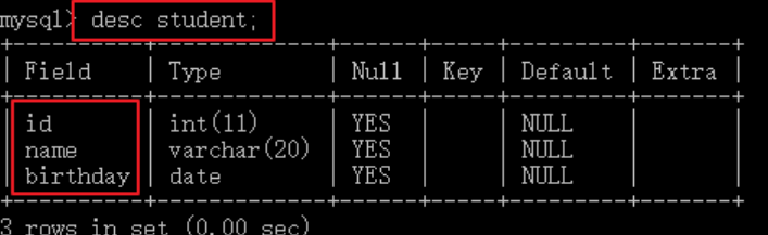 创建student表包含id,name,birthday字段