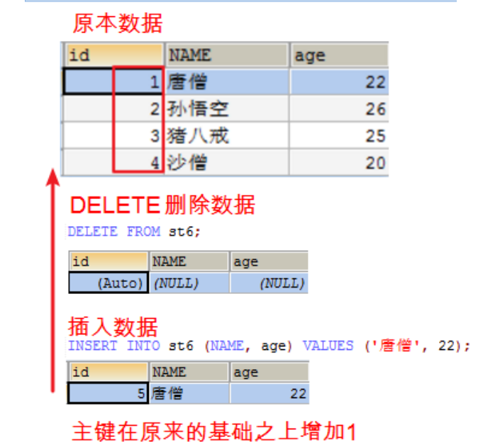 先有数据库 → 再有表 → 再有数据 一个库包含多个表