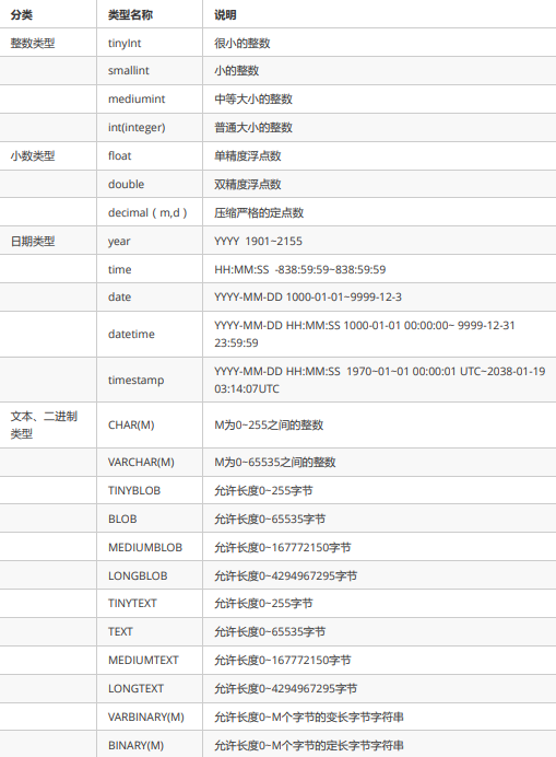 MySQL数据类型 MySQL中的我们常使用的数据类型如下: