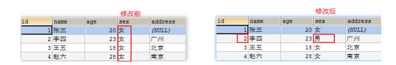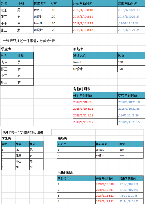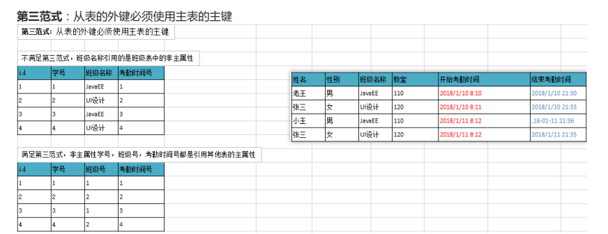 总结:如果不准守第三范式,可能会有相同数据无法区分,修改数据的时候多张表都需要修改(不方便修改)。遵守第三范式通过id可以区分相同数据,修改数据的时候只需要修改一张表(方便修改)。