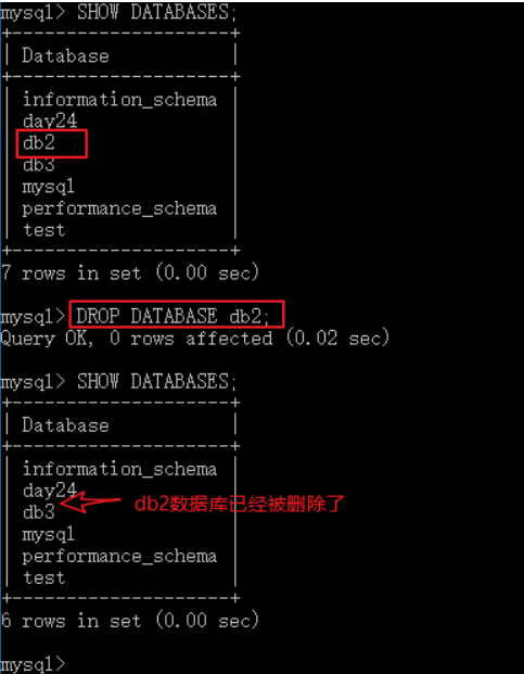 DROP DATABASE db2;