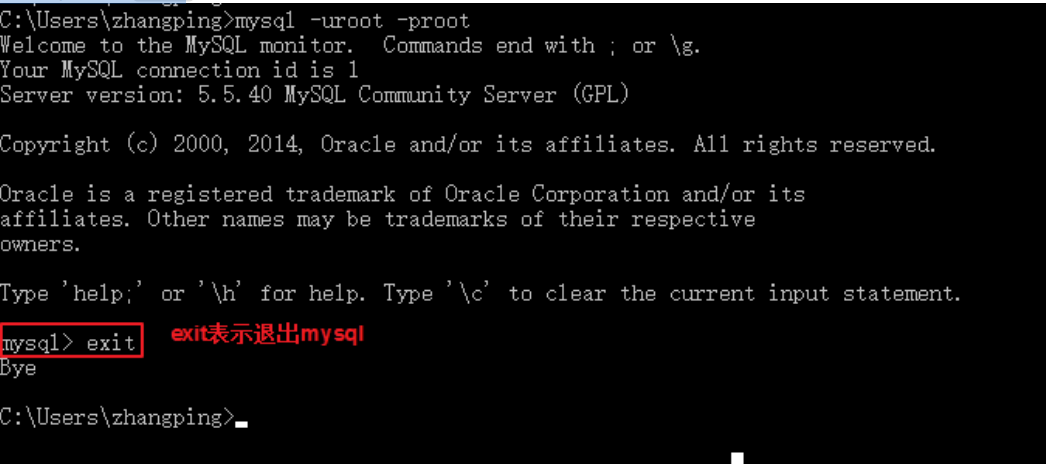 退出MySQL:exit