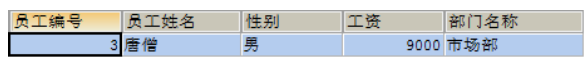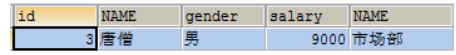 1. 确定查询字段,查询唐僧的信息,显示员工id,姓名,性别,工资和所在的部门名称