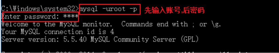 3. 登录格式3:mysql --host=ip地址 --user=用户名 --password=密码 例如:mysql --host=localhost --user=root --password=root