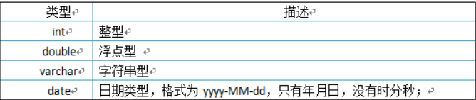 创建表 CREATE TABLE 表名 (字段名1 字段类型1, 字段名2 字段类型2…);