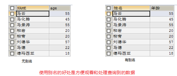 1. 我们发现写表名有点长,可以给表取别名,显示的字段名也使用别名