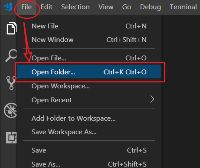 - File/Open Folder ... 打开指定文件夹