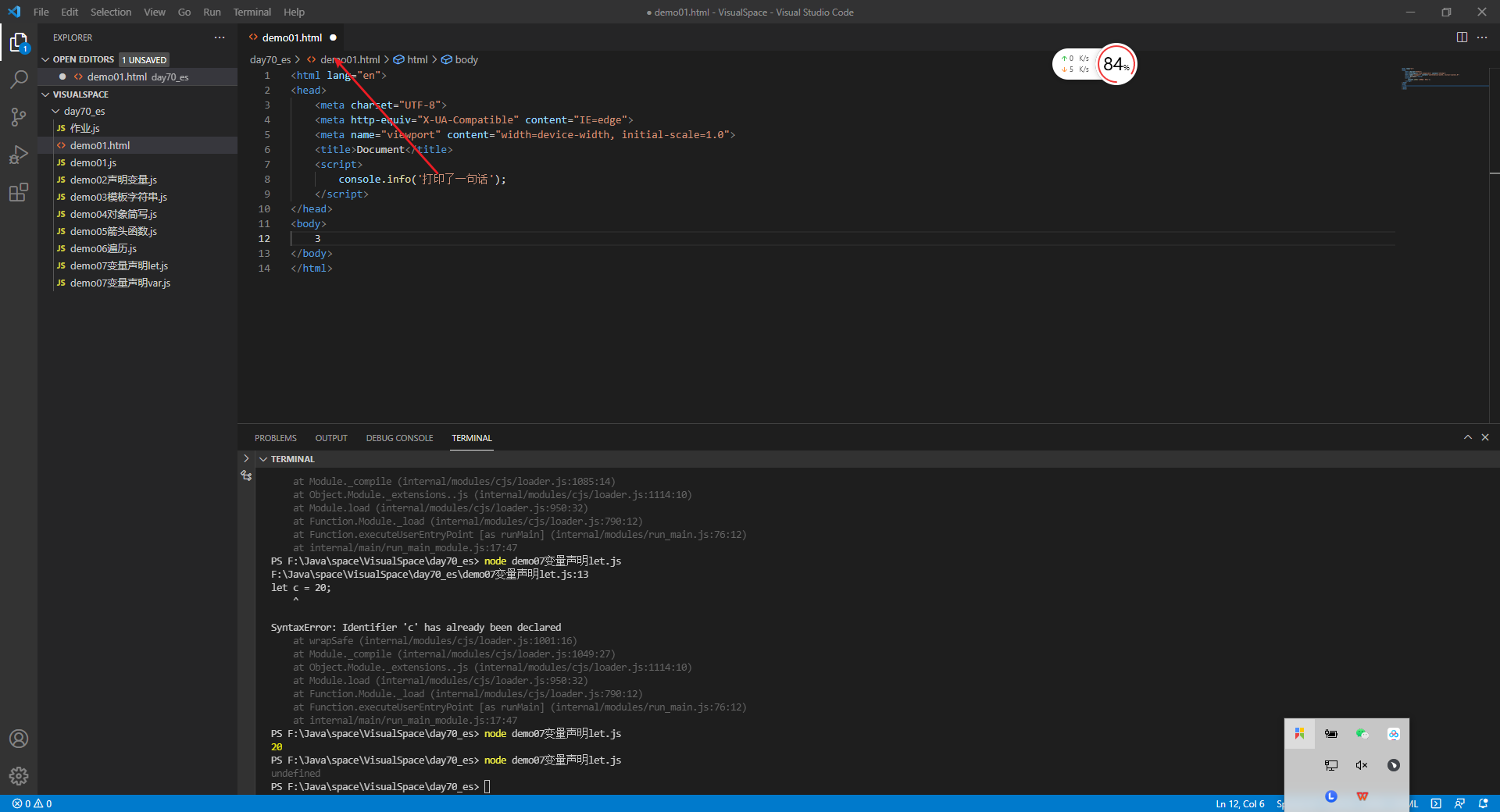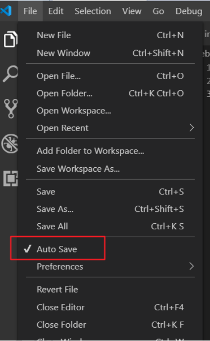 - 如果没有设置自动保存 文件上方就会有小圆点 每次需要Ctrl+s保存 如果设置了自动保存 代码没有写完就会检测报错 根据个人习惯来设置