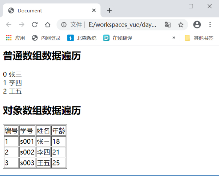 <标签 v-for=”(变量,索引) in 数组|集合”>