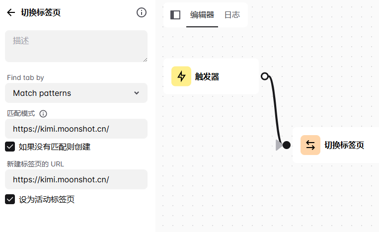 勾选【设为活动标签页】会切换到该网址,不勾选则不会切换