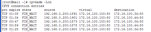 -> RemoteAddress:Port Forward Weight ActiveConn InActConn