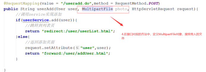 6.在接口对应的方法中定义MultipartFile对象接收传入的文件