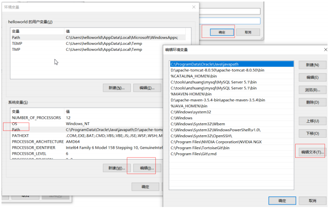 输入完成后点击确定,在系统变量中找到path点编辑在最前面输入