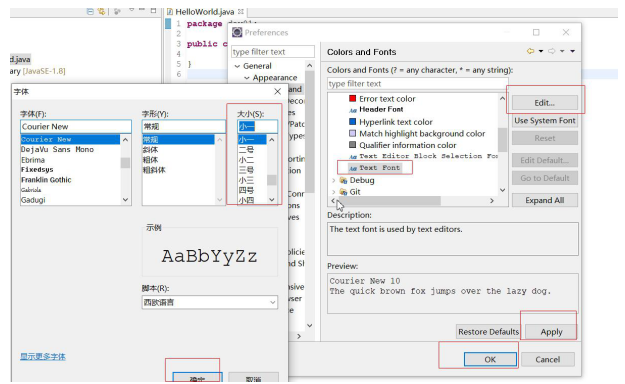 如果想要修改字体的话按以下步骤修改,修改的字体最好选英文字体,不然编写程序时,输入中文可能会旋转90度