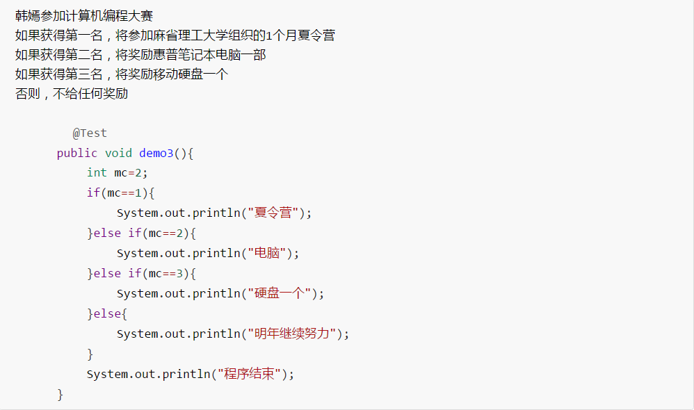 ③break结束当前的执行内容,在case后面执行,如果没有break代码会继续向下执行,一直到遇到break或整个switch语句运行完