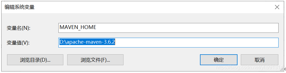 2、添加变量,变量名一般是MAVEN_HOME,变量值即是你解压的maven路径。