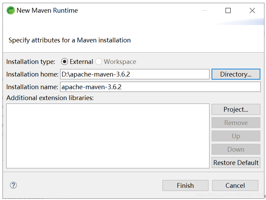 2、点击Add ,输入Maven安装的主目录,名字会自动配置,之后点击finish即可。