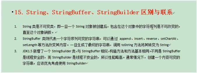 StringBuilder JDK1.5 开始 效率高 线程不安全