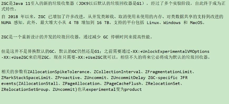 1、2、3、:有三个垃圾回收算法,新增一个致力于减少停顿时间的垃圾回收算法,Shenandoah ;两个优化G1回收算法的JEP,