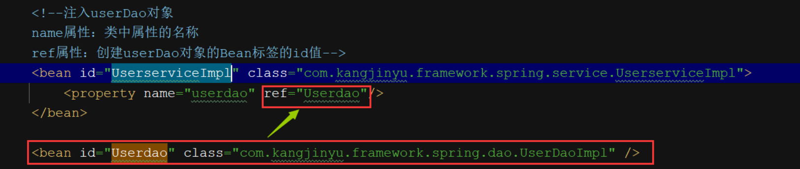 方式一:使用set方法进行注入