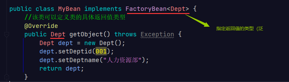 另一种,工厂Bean定义的类型可以和返回值类型不同;