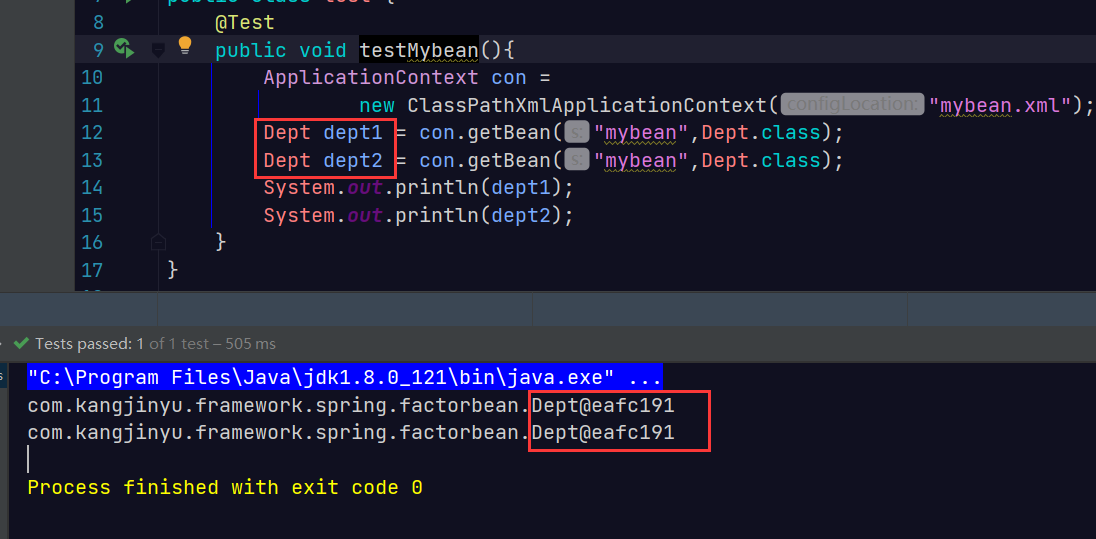 2.设置scope值为singleton时,加载spring的配置文件就创建一个单实例对象;