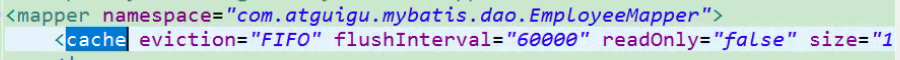 (2)在mapper.xml中配置使用二级缓存使用<cache></cache>标签,参数介绍