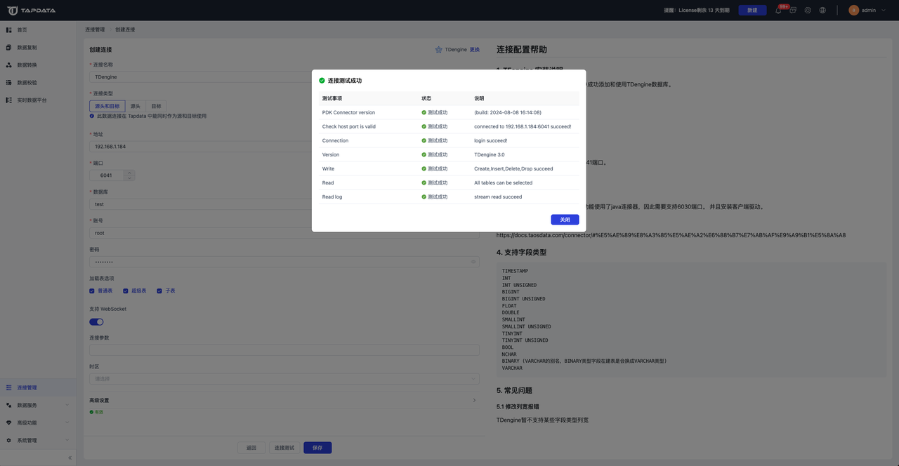 更多详情,参见《TapData 帮助文档-连接数据源-自建数据库 TDengine》:https://docs.tapdata.net/prerequisites/on-prem-databases/tdengine