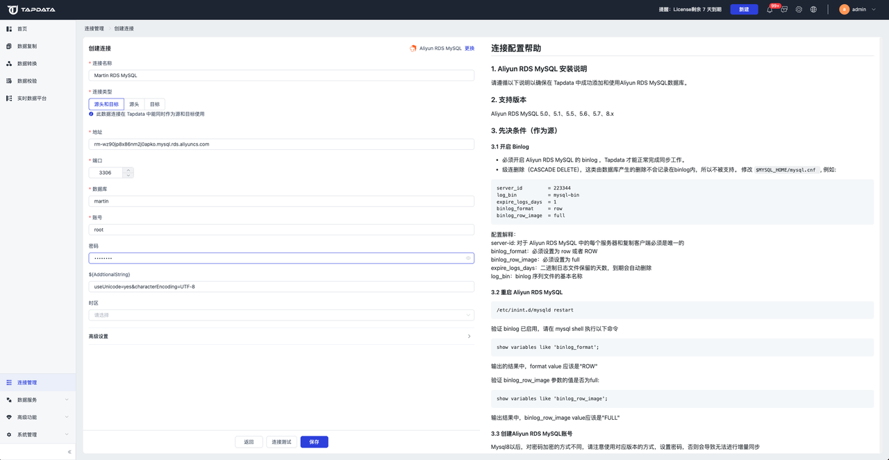 二、TapData 高效同步教程:以 TDengine → RDS MySQL 为例