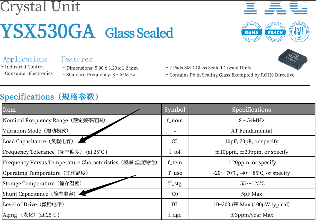 其中,CS为晶体两个管脚间的寄生电容(Shunt Capacitance),在晶振的数据手册上可以找到