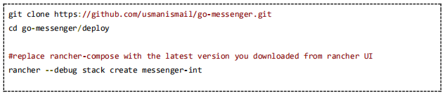 现在我们定义好了模板,就可以使用Rancher Compose来启动我们的环境了。接下来,只需要检出go-message项目并从Rancher UI中下载Rancher CLI即可。关于如何在开发机器上设置rancher-compose,可以参考这里的说明: