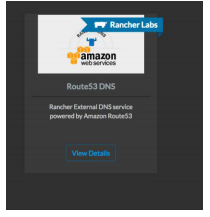 现在我们已经有了Hosted Zone以及IAMs用户设置,我们可以将Route53集成添加到我们的 Rancher Server(rancher服务器)。有关如何操作的详细说明可以在这里找到:https://rancher.com/introducing-rancher-service-discovery-integration-with-amazon-route53/。简而言之,你需要在rancher服务器上浏览Catalog > Library并选择Route 53 DNS。系统会要求你指定之前设置的Hosted Zone,以及具有Route53访问权限的Rancher IAMs用户的AWS Access和Secret Keys。输入信息并且单击创建后,你应该能看到在你的环境中有一个包含route53服务的新堆栈。