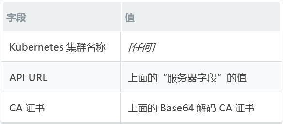 复制server和certificate-authority-data字段的值,不包括引号,并保存它们。