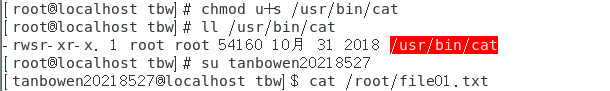 suid权限使用s表示,增加权限u+s,移除权限u-s;