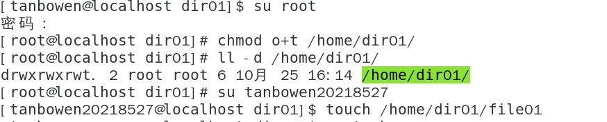 作用:sticky权限一般针对目录来设置,作用是只允该目录下的文件的创建者删除自己的创建的文件,不允许其他人删除文件。(root用户除外,因为root用户是超级管理员),而且sticky权限只能设置在other位置上。