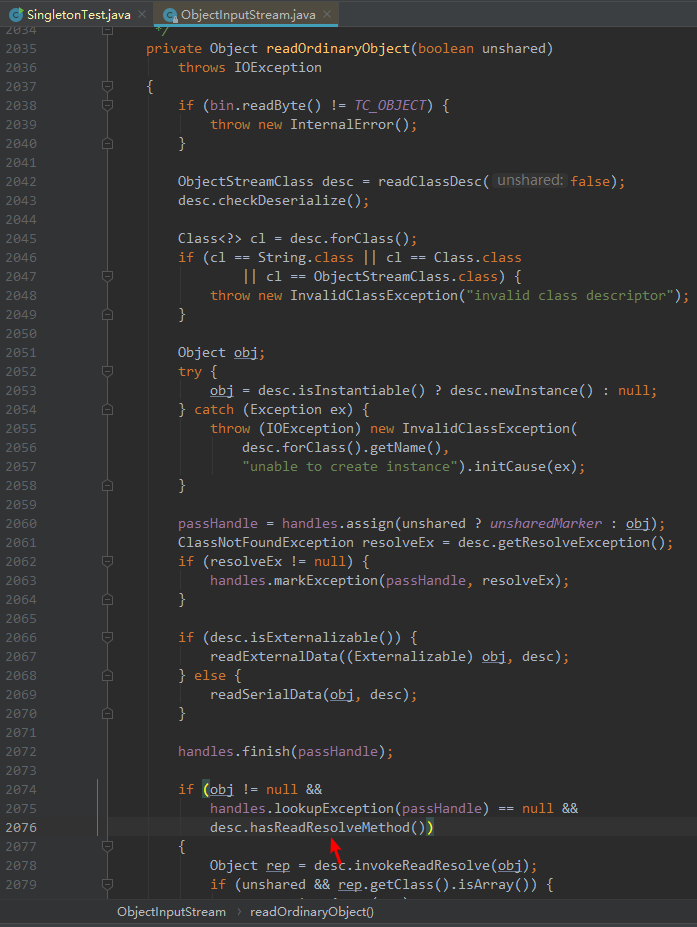 通过debug,跟踪反序列化的执行过程,关键代码如下