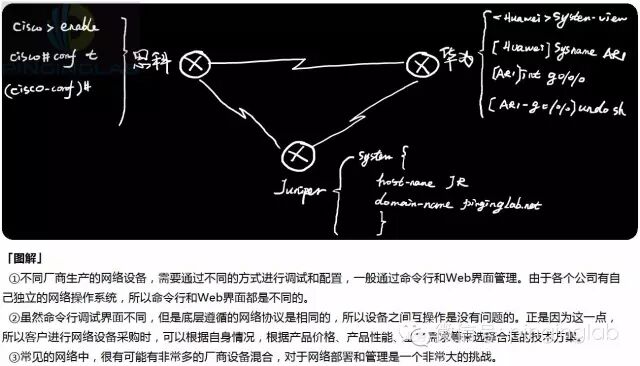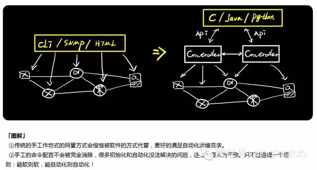 SDN时代,我们网络工程师/网络运维/IT运维人员对网络部署的方式,需要从“作坊式”的“手码”配置,慢慢变成采用脚本语言/编程语言等方式对网络进行“编程式”部署,更快更好的响应业务需求。是的,产业链在融合、IT技术在融合、软件和硬件在融合,变则通,不变则亡!
