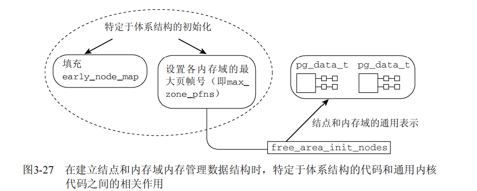 在内存域边界已经确定之后,free_area_init_nodes分别对各个内存域调用free_area_init_node创建数据结构。为此还需要几个辅助函数。
