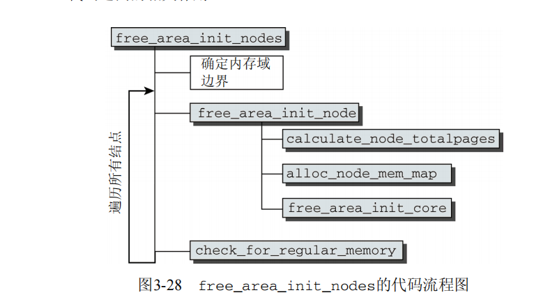从内核版本2.6.10开始提供了一个通用框架,用于将上述信息转换为伙伴系统预期的结点和内存域数据结构。在这以前,各个体系结构必须自行建立相关结构。现在,体系结构相关代码只需要建立前述的简单结构,将繁重的工作留给free_area_init_nodes即可。图3-27给出了该过程概述,图3-28给出了free_area_init_nodes的代码流程图。