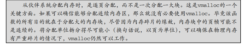 分配的页从相关结点的伙伴系统移除。在调用时,vmalloc将gfp_mask设置为GFP_KERNEL |__GFP_HIGHMEM,内核通过该参数指示内存管理子系统尽可能从ZONE_HIGHMEM内存域分配页帧。理由已经在上文给出:低端内存域的页帧更为宝贵,因此不应该浪费到vmalloc的分配中,在此使用高端内存域的页帧完全可以满足要求。