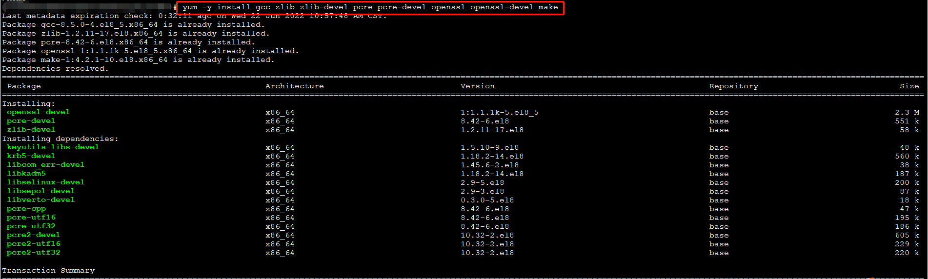 1.安装依赖:yum -y install gcc zlib zlib-devel pcre pcre-devel openssl openssl-devel make